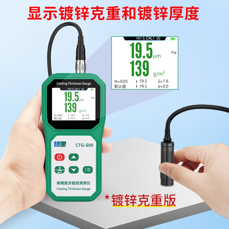 溢佰CTG-600Z可以同时显示镀锌克重和镀锌厚度。