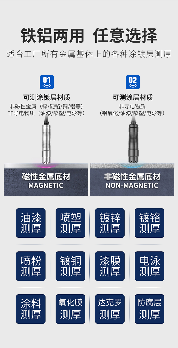 适用场合:磁性基体上的非磁性涂层