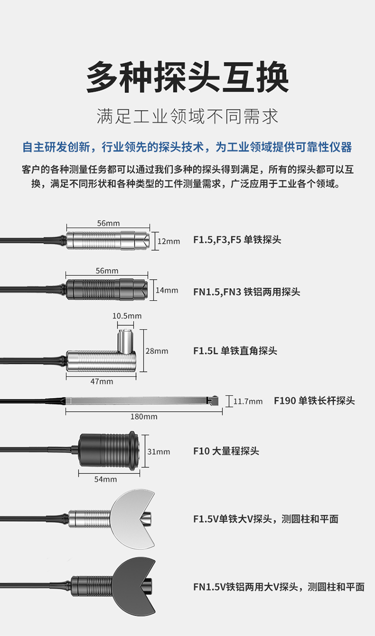 Fe功能可检测所有磁性基体上的非磁性涂层厚度,例如涂在钢、铁上的漆、粉末涂层、塑料、瓷、防火涂料、防腐层、搪瓷、鳞片、3PE等。